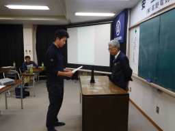贈呈式では、佐藤校長より「寄付金は学生の教育のために使わせていただきます」と